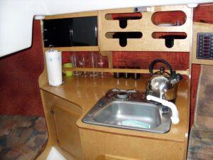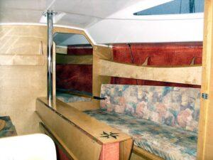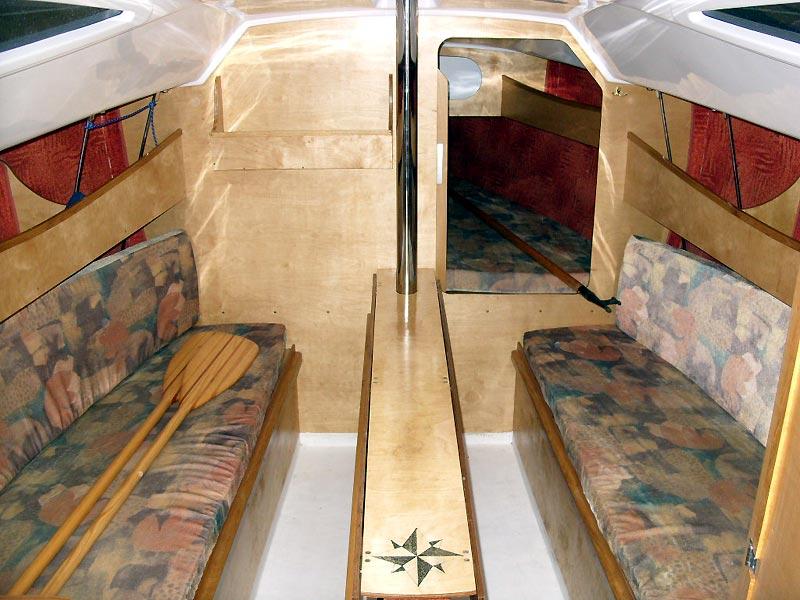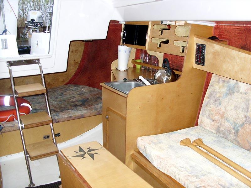 Wnętrze jachtu jest wyjątkowo obszerne i funkcjonalne wysokość w kabinie 185 cm (pod suw klapą 193 cm). Pełnowymiarowa mesa z dwoma podwójnymi kojami po 200 cm każda, duży kambuz i toaleta o wielkości typowej dla 9 metrowego jachtu z pewnością dają poczucie komfortu. Jacht jest przystosowany dla 8 osób, z zamykaną kajutą dziobową i wydzieloną kabiną WC. Bogato wyposażony z wieloma urządzeniami ułatwiającymi żeglowanie. Niewielkie zanurzenie daje możliwość dobicia do każdego brzegu, a podnoszona płetwa sterowa przy zacumowaniu rufą do brzegu pozwala wyjść na brzeg „suchą stopą”