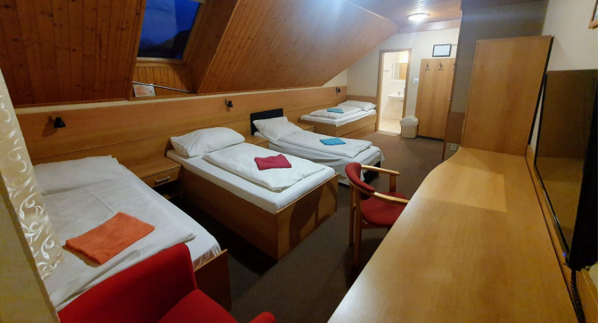 pensjonat o wysokim standardzie, leży na południu gminy Liptovsky Jan, w jednej z najpiękniejszych dolin Liptova – Janskej dolinie. Przestronne, niezwykle przytulnie urządzone 2, 3, 4 a także 5 osobowe pokoje, wyposażone są w wc, prysznic, TV satelitarną. Część łóżek wysuwanych z głównego łóżka oraz łóżek dwuosobowych (dwa materace, dwa komplety pościeli). Dodatkowo w pensjonacie znajduje się elegancko urządzona restauracja, jacuzzi, sauna a także a do dyspozycji uczestników jest bilard, stół do tenisa stołowego, stanowiska komputerowe i konsole do gier. Na terenie pensjonatu dostęp do bezprzewodowego Internetu. Ponadto przy pensjonacie (na zewnątrz) znajdują się dwa źródełka termalne o temperaturze około 26o – możliwość kąpieli dla chętnych.