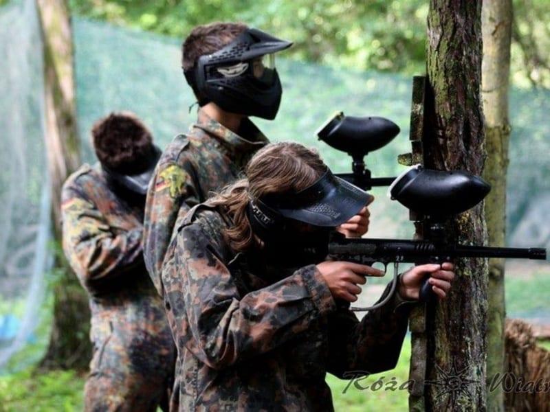 Paintball – (PB1) – w cenie wstęp na pole paintballowe, wypożyczenie pełnego sprzętu do gry w paintball (marker, butla, maska, mundur), kulki, gaz, serwis sprzętu, instruktor prowadzący zajęcia. Jedne zajęcia – zazwyczaj jest to kilka gier po kilkanaście minut (200 kul na osobę).