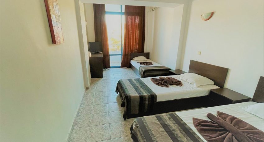 Zakwaterowanie w przestronnych pokojach 3-osobowych z łazienką. Każdy pokój wyposażony jest w lodówkę, TV, klimatyzację za free oraz posiada balkon.