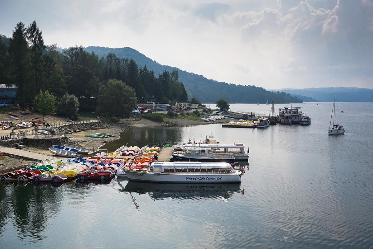 Jezioro Solińskie. Zbiornik retencyjny położony w pobliżu miejscowości Solina. Ma powierzchnię ok. 22 km² i największą w Polsce pojemność (472 mln m³). Otoczenie Jeziora Solińskiego jest licznie odwiedzane przez turystów i wczasowiczów. Na jego brzegach powstało kilka ośrodków rekreacyjnych, a na zachodnim brzegu jeziora znajduje się znana miejscowość uzdrowiskowa Polańczyk. Jedną z atrakcji stanowi także imponująca, najwyższa w Polsce, zapora wodna (81,8 m wysokości i 664 m długości), która wraz ze znajdującą się poniżej niej elektrownią jest częścią projektu hydroenergetycznego zagospodarowania Sanu. Latem 2015 roku na solińskiej zaporze powstał największy na świecie mural. Przedstawiające zwierzęta malowidło ma ok. 3600 m kwadratowych. Atrakcją Jeziora Solińskiego są także rejsy wycieczkowe, dzięki którym podziwiać można przepiękną, zieloną okolicę.